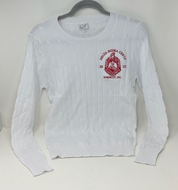 Select options This product has multiple variants. The options may be chosen on the product page#2102 Red Knit Turtle Neck Shawl/Sweater with White DST Symbols
