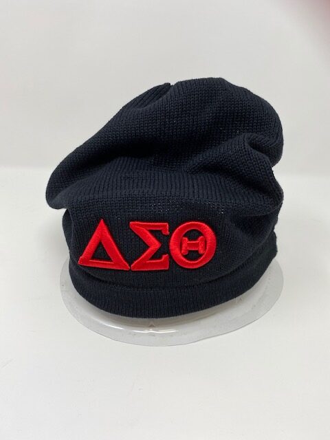 Black Natural Hair Hat with red DST symbols
