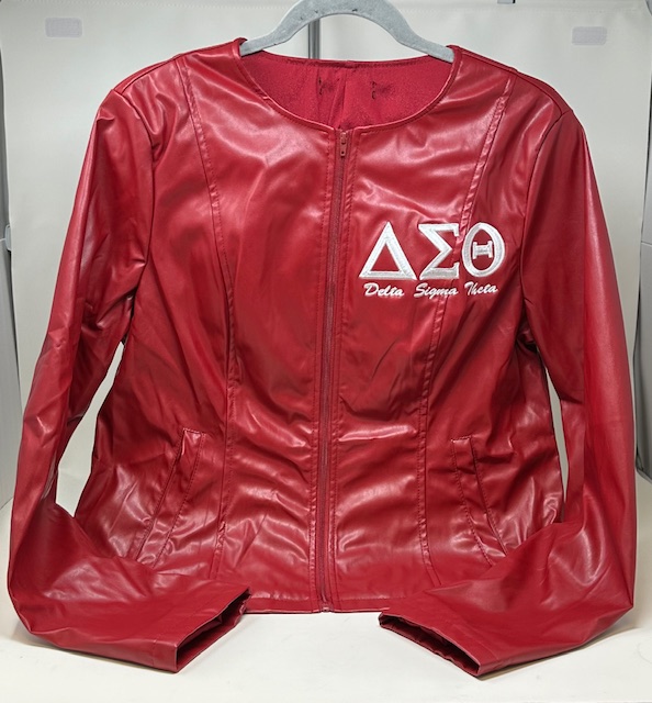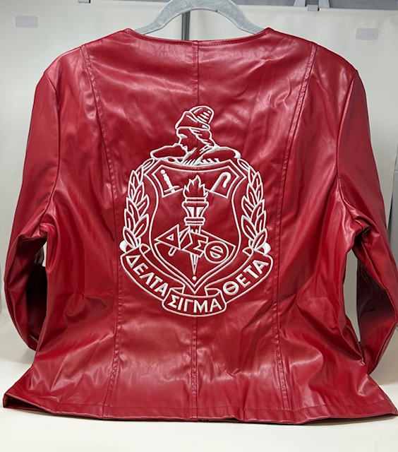 Front: Embroidered Delta Symbols with Cursive Writing Below