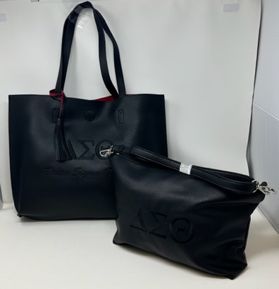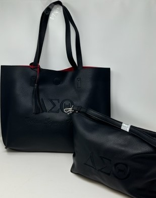 TT01 2-in-1 Black Tassel Tote with Black DST Symbols | Embroidered