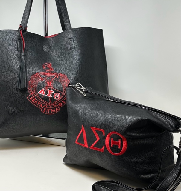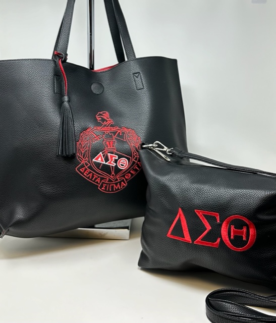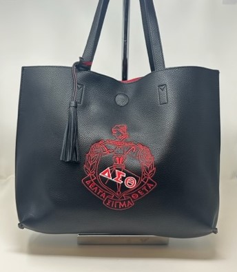 TT03 2-in-1 Black Tassel Tote with Crest | Embroidered